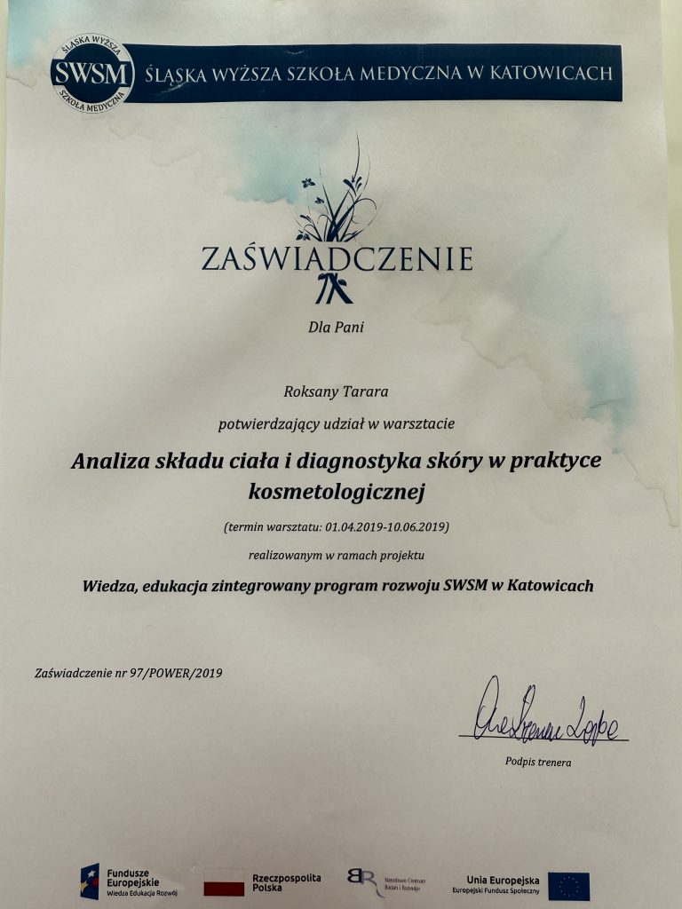 Od najmłodszych lat interesowała się wizażem oraz zdrowym stylem życia, co wpłynęło na decyzję o rozpoczęciu studiów w Śląskiej Wyższej Szkole Medycznej w Katowicach. Jest osobą zdeterminowaną, empatyczną i ukierunkowaną na rozwój. Stale podnosi swoje kwalifikacje zawodowe uczestnicząc w wielu kursach i szkoleniach tematycznych.