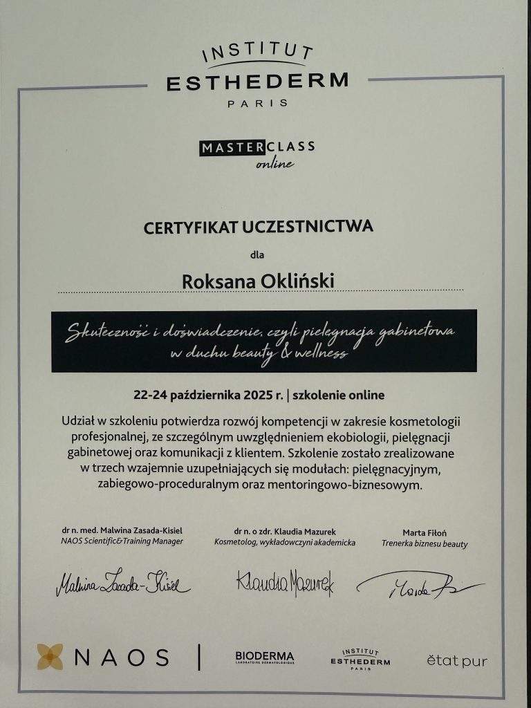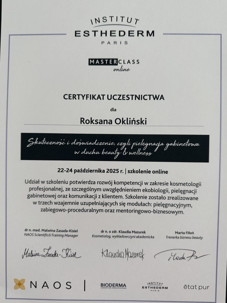 Wykwalifikowana magister kosmetologii z pięcio letnim doświadczeniem.
